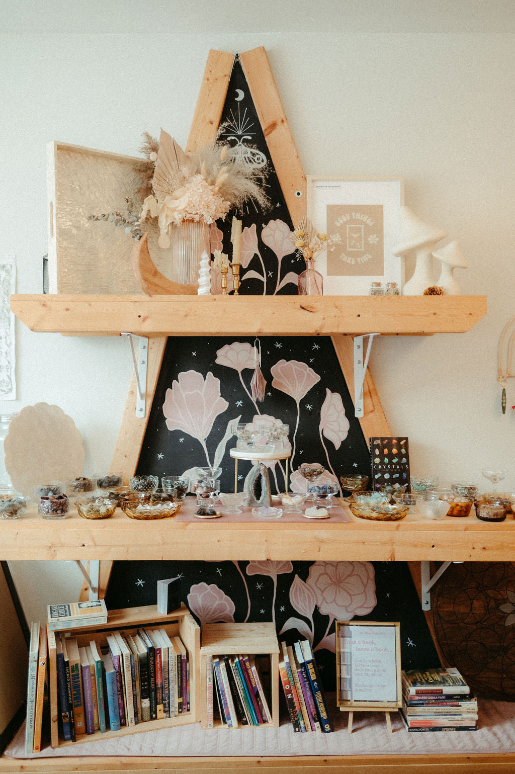 When you step into the shop you will find items that encourage and foster a coming home to self. From self care and wellness essentials, home goods and garnishes, jewelry, crystals, teas, adaptogenic beverages, oracle cards and more!