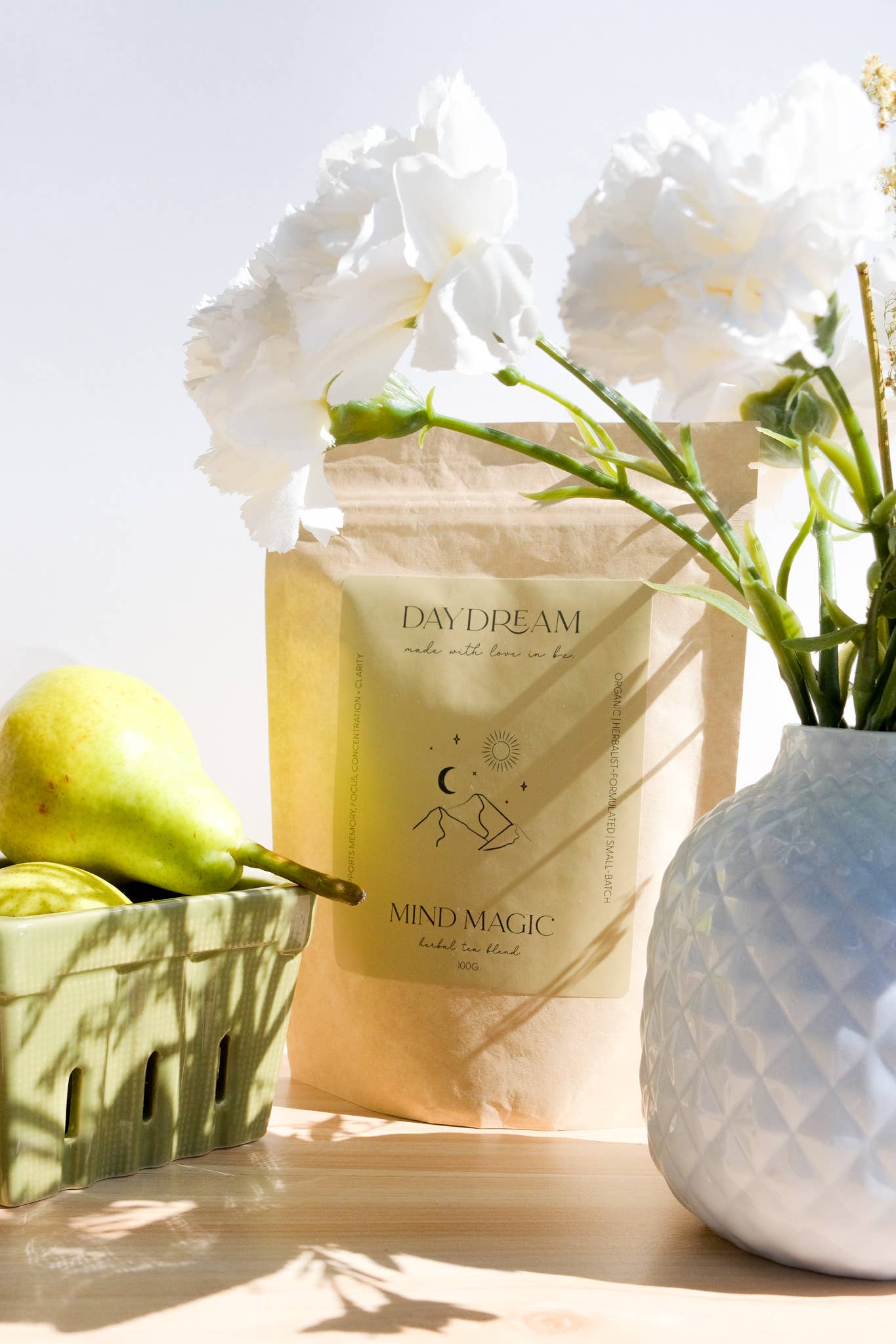 Mind Magic herbal tea blend has been formulated using organic Green Tea, Yerba Mate and a blend of powerful cognitive supporting herbs to promote focus, concentration and mental clarity.