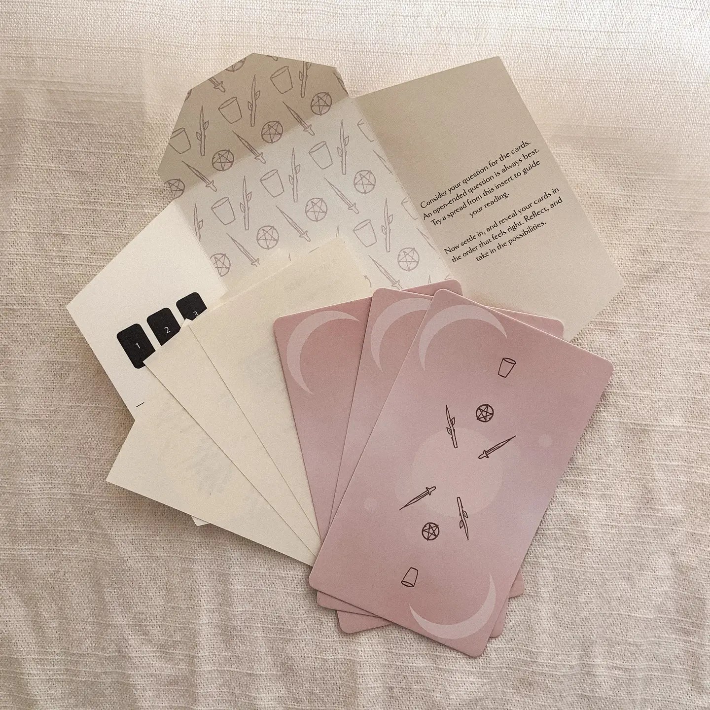 A three-card reading, kept sealed and secret. No one knows what it says until you reveal it.