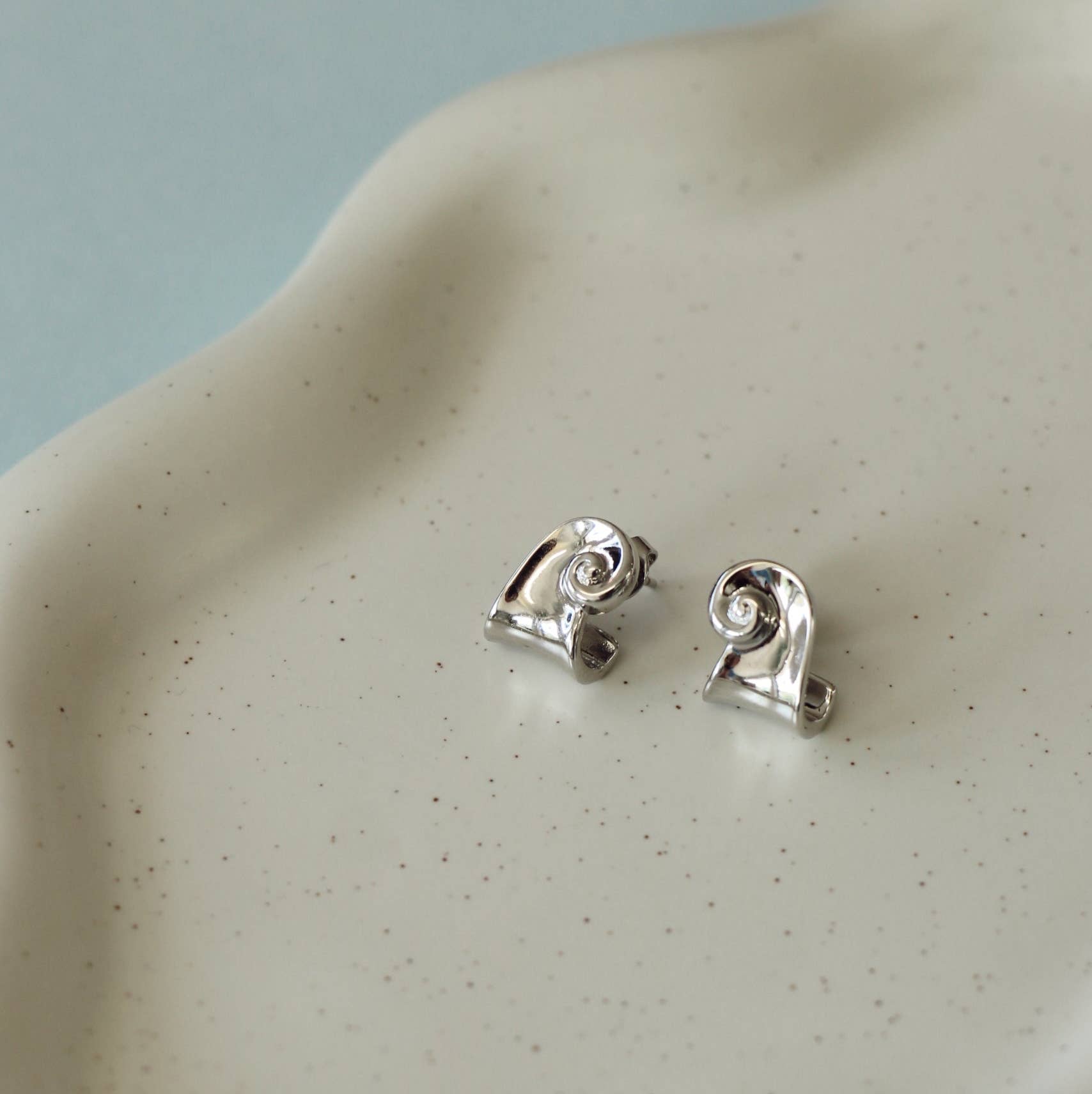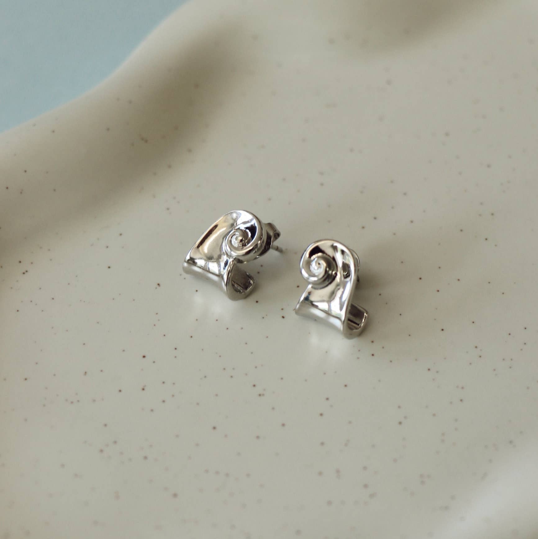 Spiral-shaped post earrings that wrap around the bottom of the lobe.