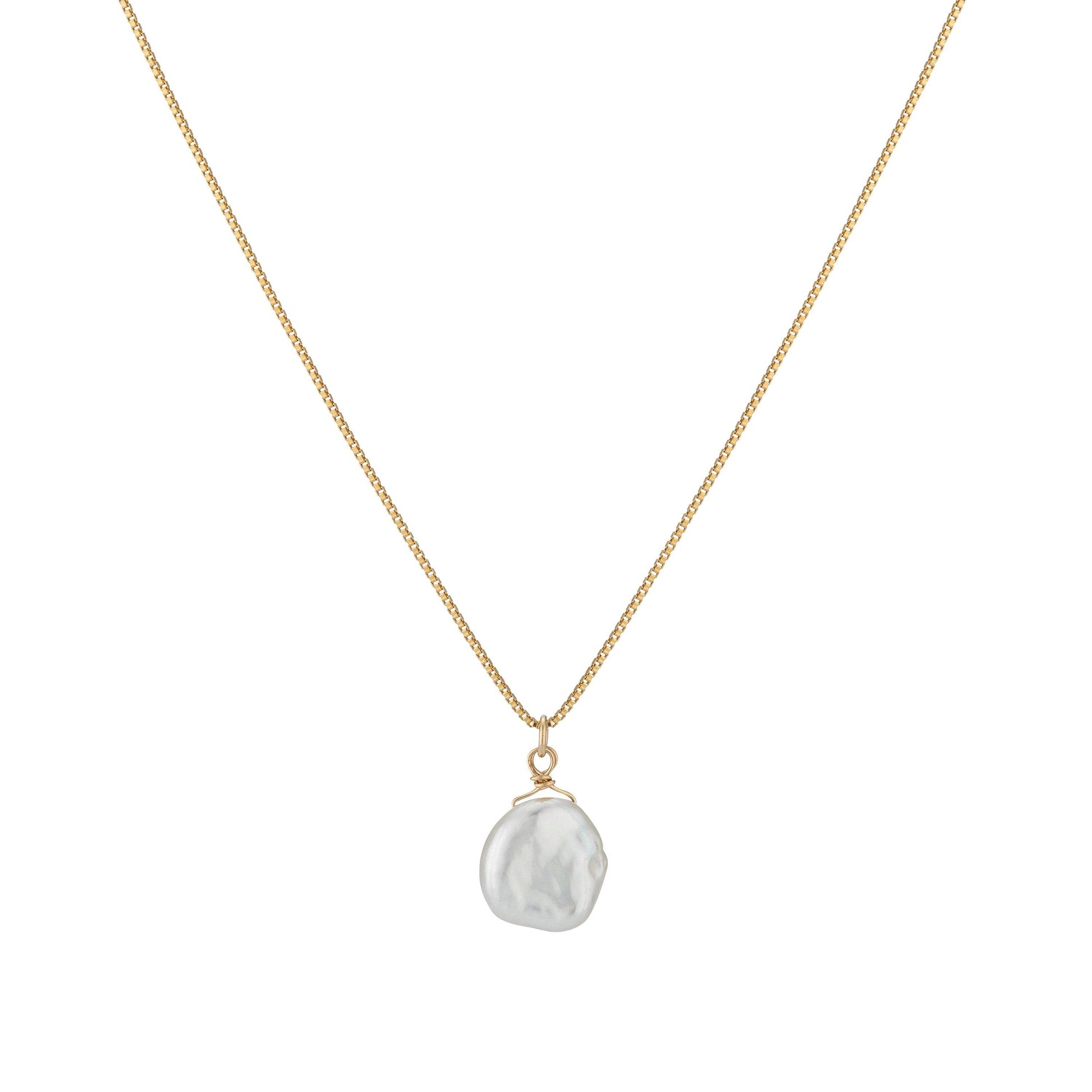 Sirene pearl necklaces feature an organically shaped cream coloured freshwater pearl, suspended on a lovely 14K gold filled or sterling silver necklace chain.