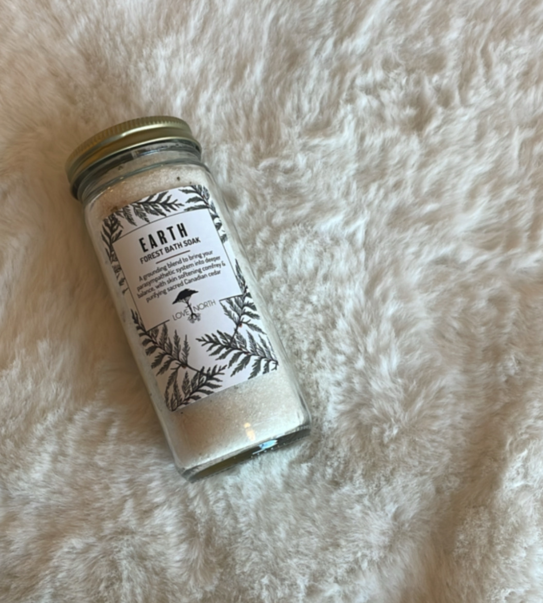 Forest bath soak, soothes the parasympathetic nervous system with Canadian distilled cedar essential oil, with skin softening comfrey and nettles to gently cleanse and detox the body.