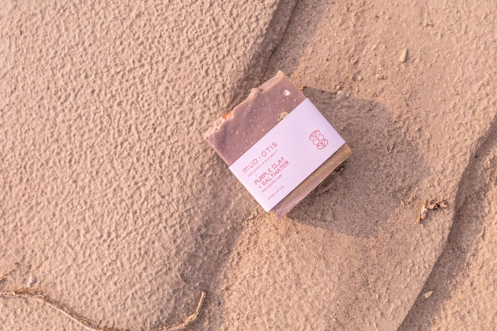 Purple Clay + Salt Water - whole Ingredients: olive oil, coconut oil, sodium hydroxide, white grapefruit essential oil, tangerine essential oil, rosemary essential oil, spearmint essential oil, brazilian purple clay, non nano zinc oxide, kaolin clay, Himalayan salt