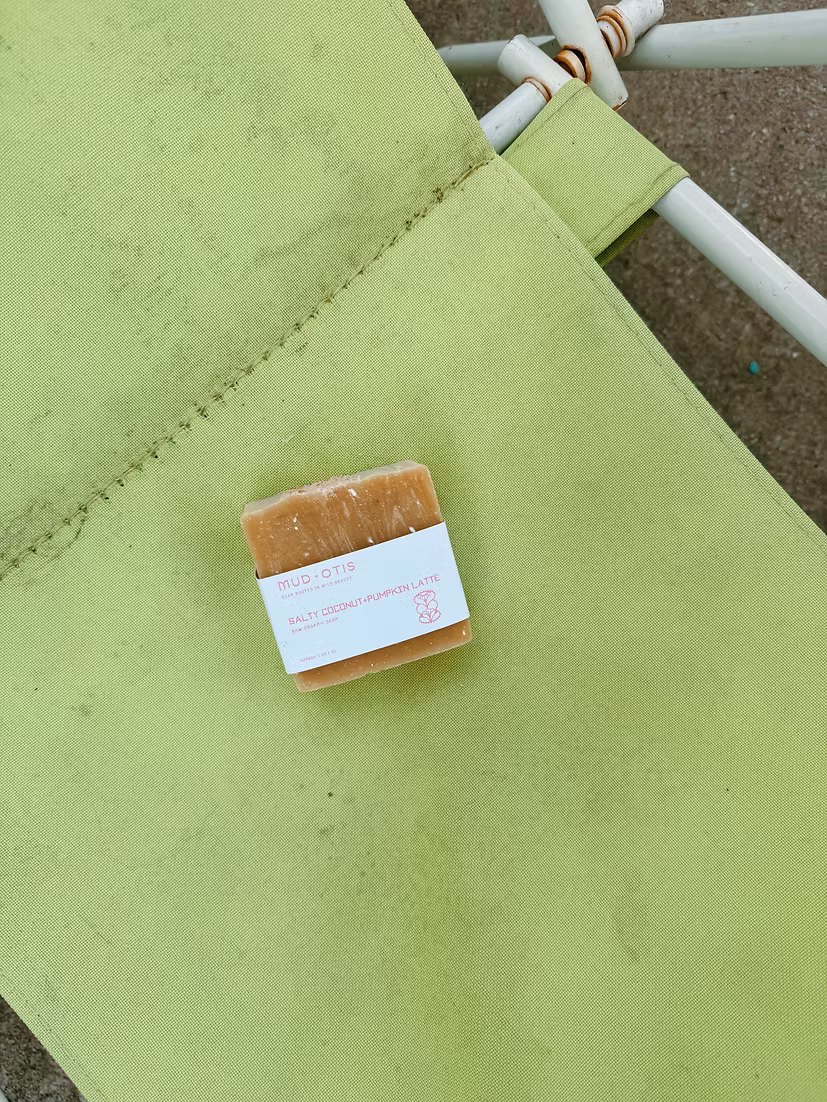 Salty Coconut + Pumpkin Latte - whole Ingredients: raw shea butter, extra virgin olive oil, coconut oil, pumpkin puree, pumpkin butter, cinnamon essential oil, sweet orange essential oil, nutmeg essential oil, ginger essential oil, turmeric powder, Himalayan salt, sodium hydroxide