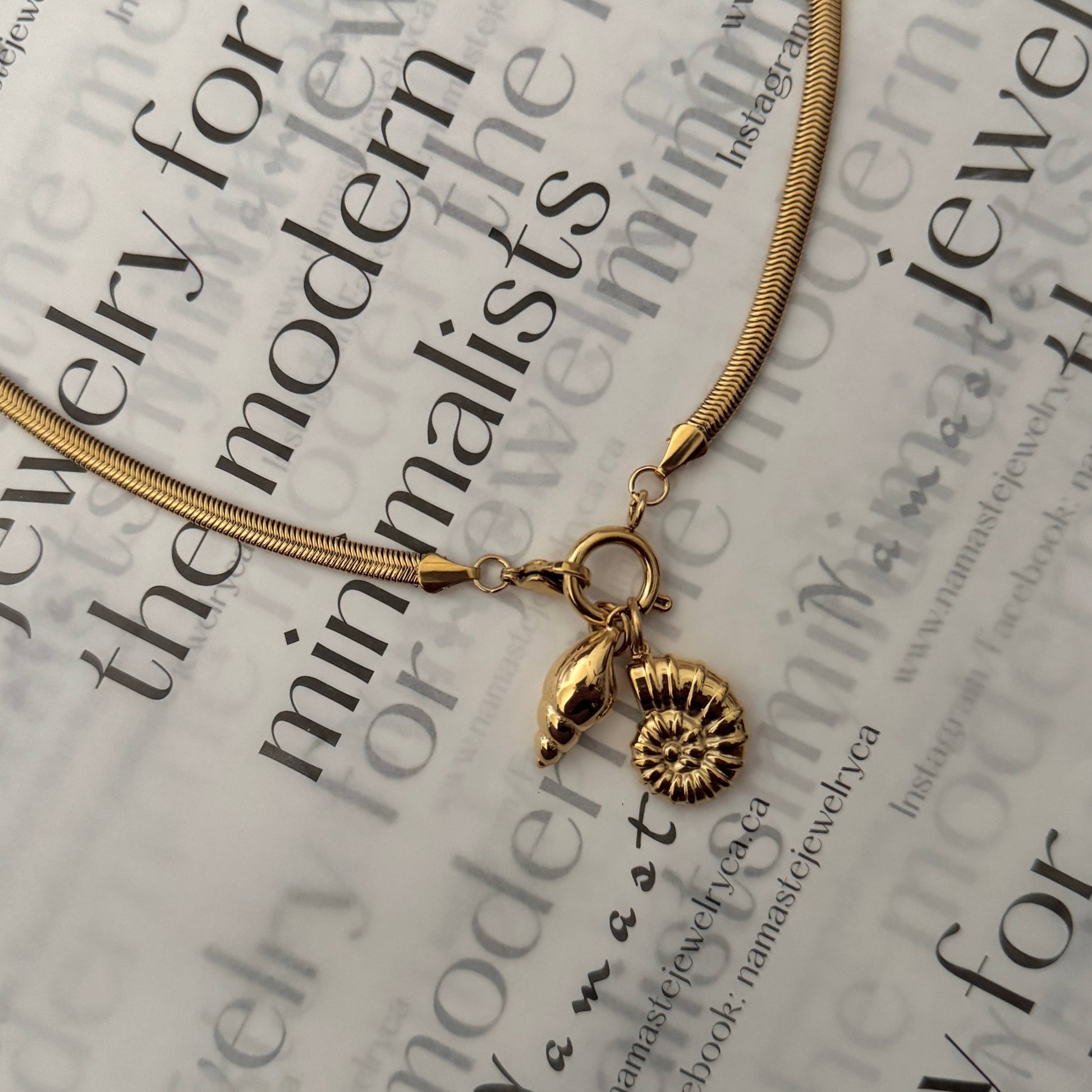 A soft snake chain necklace with 2 beach inspired charms •Hypoallergenic •Nickel and Lead Free •Anti Tarnish •Water Resistant Material/Size