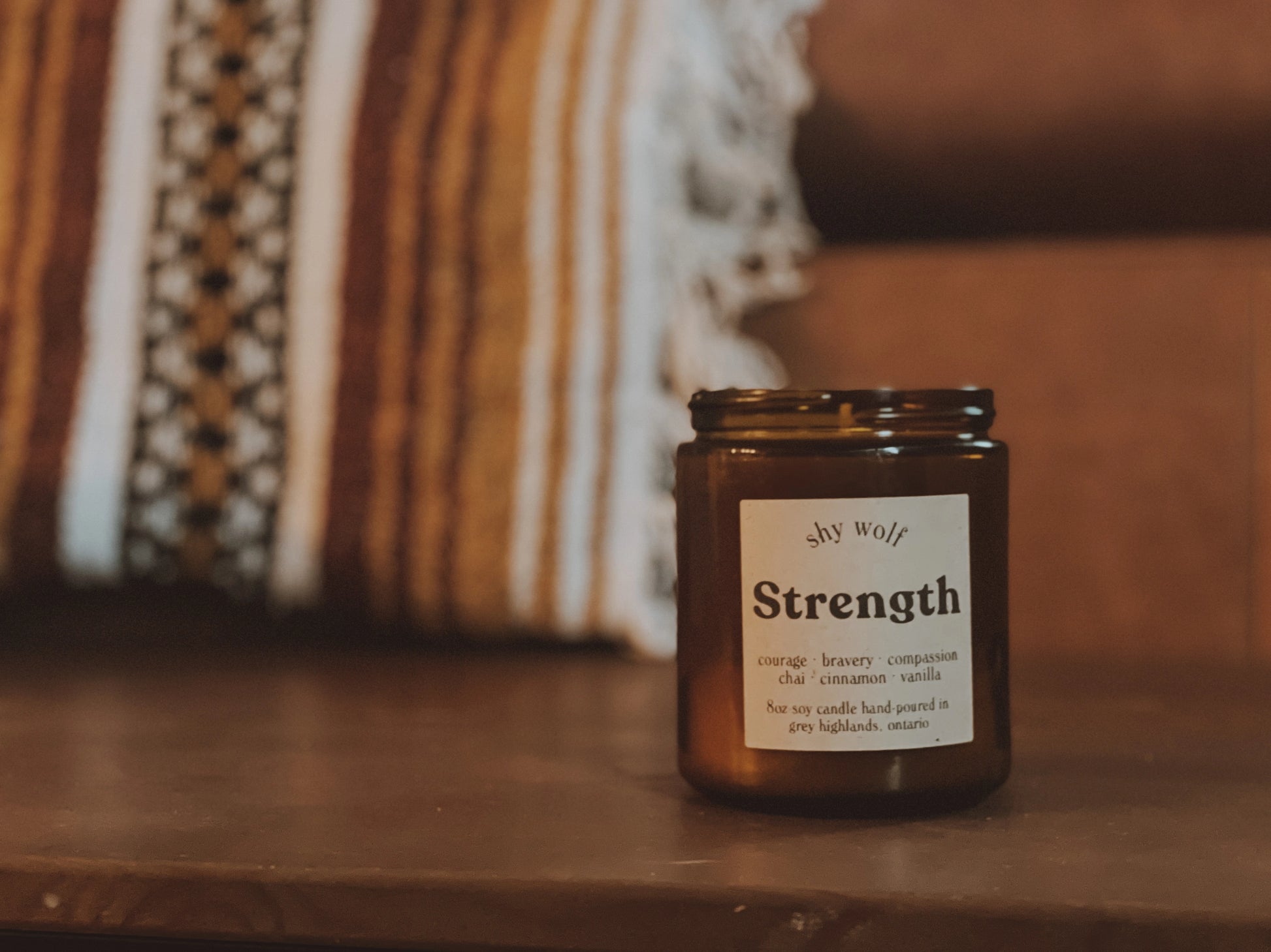 8 oz candles made from North American soy wax and burn for 40-50 hours.