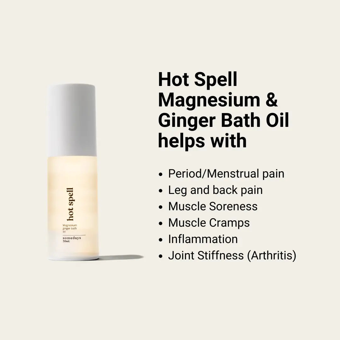 A highly concentrated, energizing bath oil formulated to ease period cramps and promote deep muscle relaxation.